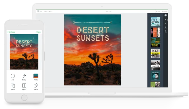 Spark te permite convertir tus textos y fotografías en gráficos de aspecto profesional que llamarán la atención de todos. Solo tienes que elegir una plantilla de diseño, agregar tu fotografía y tu texto, y editar el tamaño en un momento para que se ajuste a tus redes sociales y blogs favoritos.