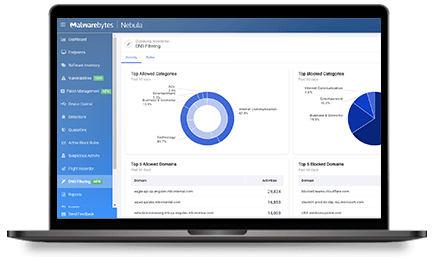 Evite que las amenazas que se originan en sitios web nefastos, aplicaciones basadas en la web o contenido en línea causen estragos en su organización. Ofrezca a los usuarios finales una experiencia web más segura y productiva con nuestro módulo de filtrado de DNS para nuestra plataforma Nebula basada en la nube.